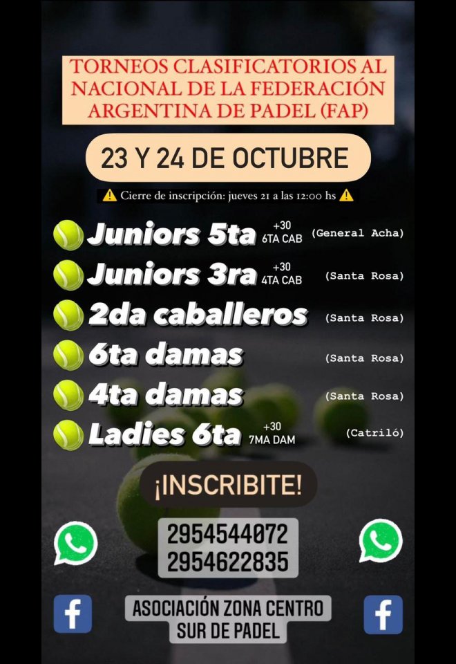 »» Evento: 24 y 25 de octubre »» Localidad: Catriló | General Acha | Santa Rosa »» Fechas: 23/10/2021 al 24/10/2021